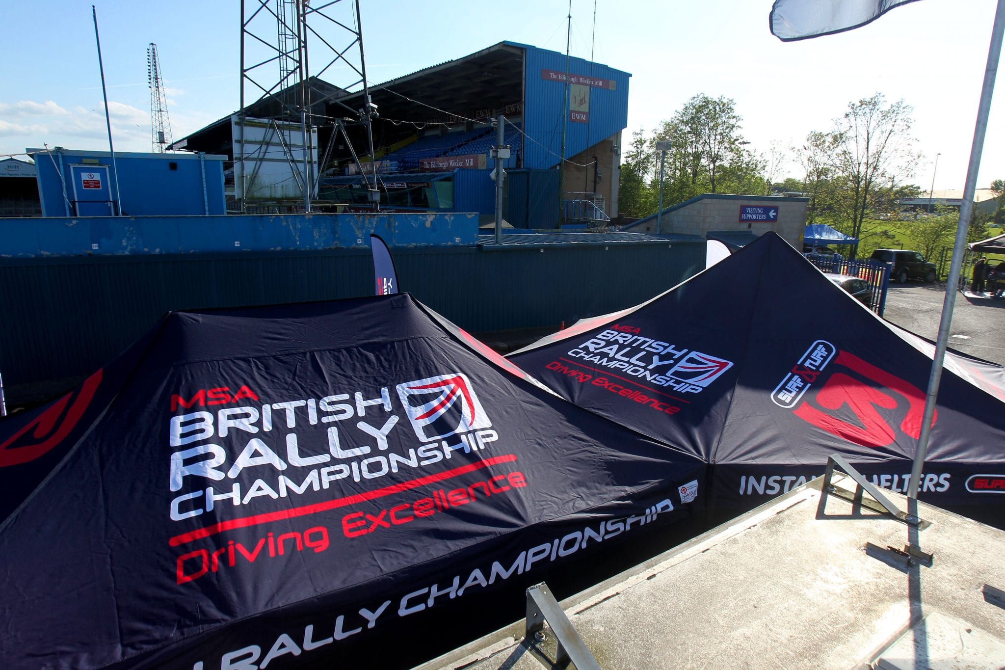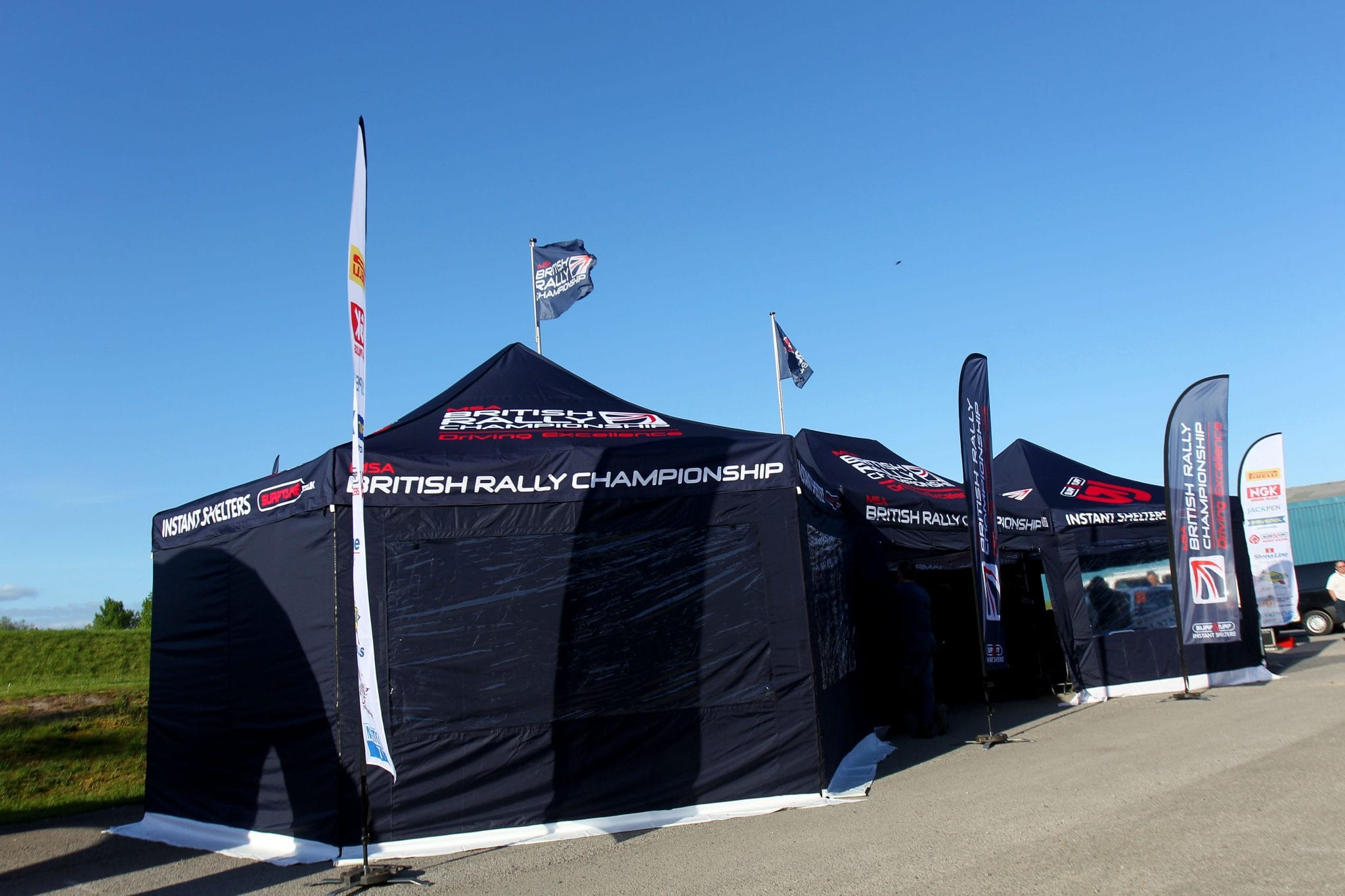 The team behind the rallying series were looking for a partner that could provide them with a whole host of heavy duty pop-up gazebos, in a variety of sizes with their branding clearly displayed as well as branded event products such as printed feather flags and branded event banners.