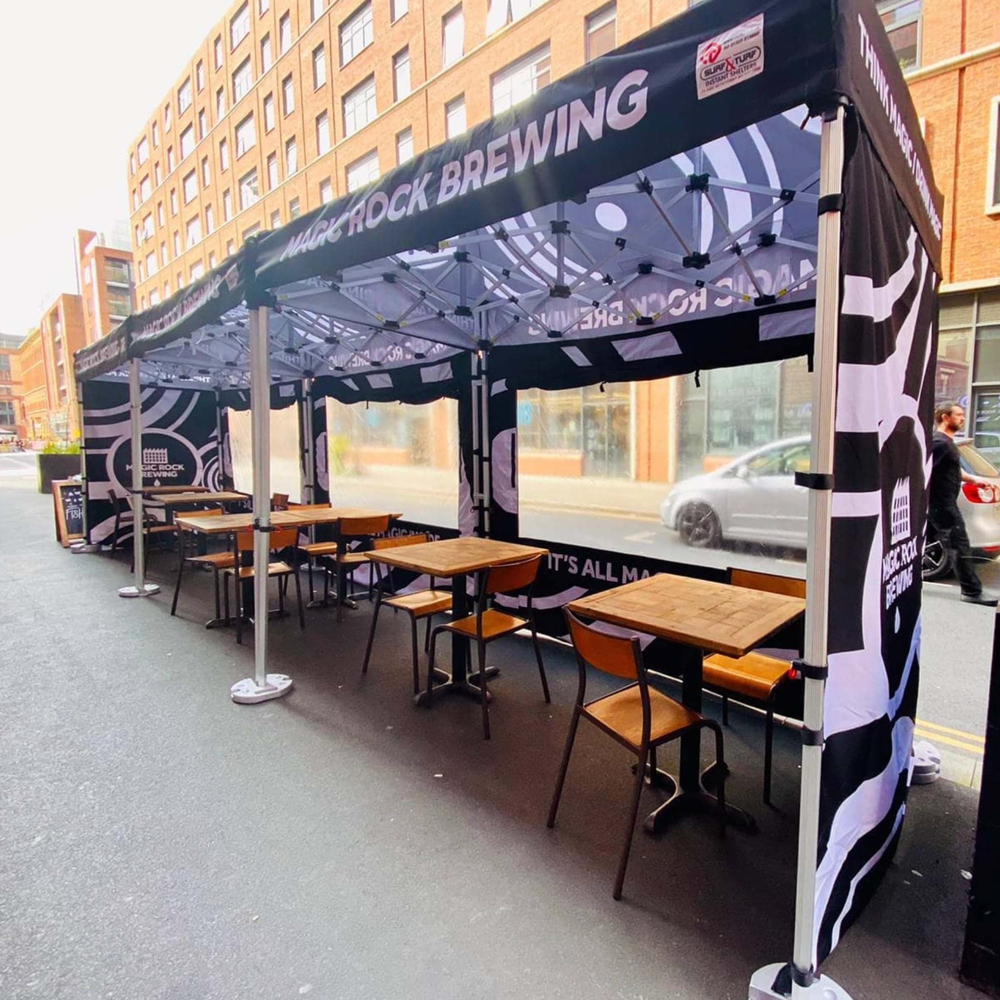 Since the pandemic, outdoor seating areas at bars, pubs, restaurants and take aways have seen a massive boom. The Hip-Hop Chip Shop wanted to provide an enjoyable outdoor dining experience for their customers that would keep business going through the unpredictable Manchester weather.