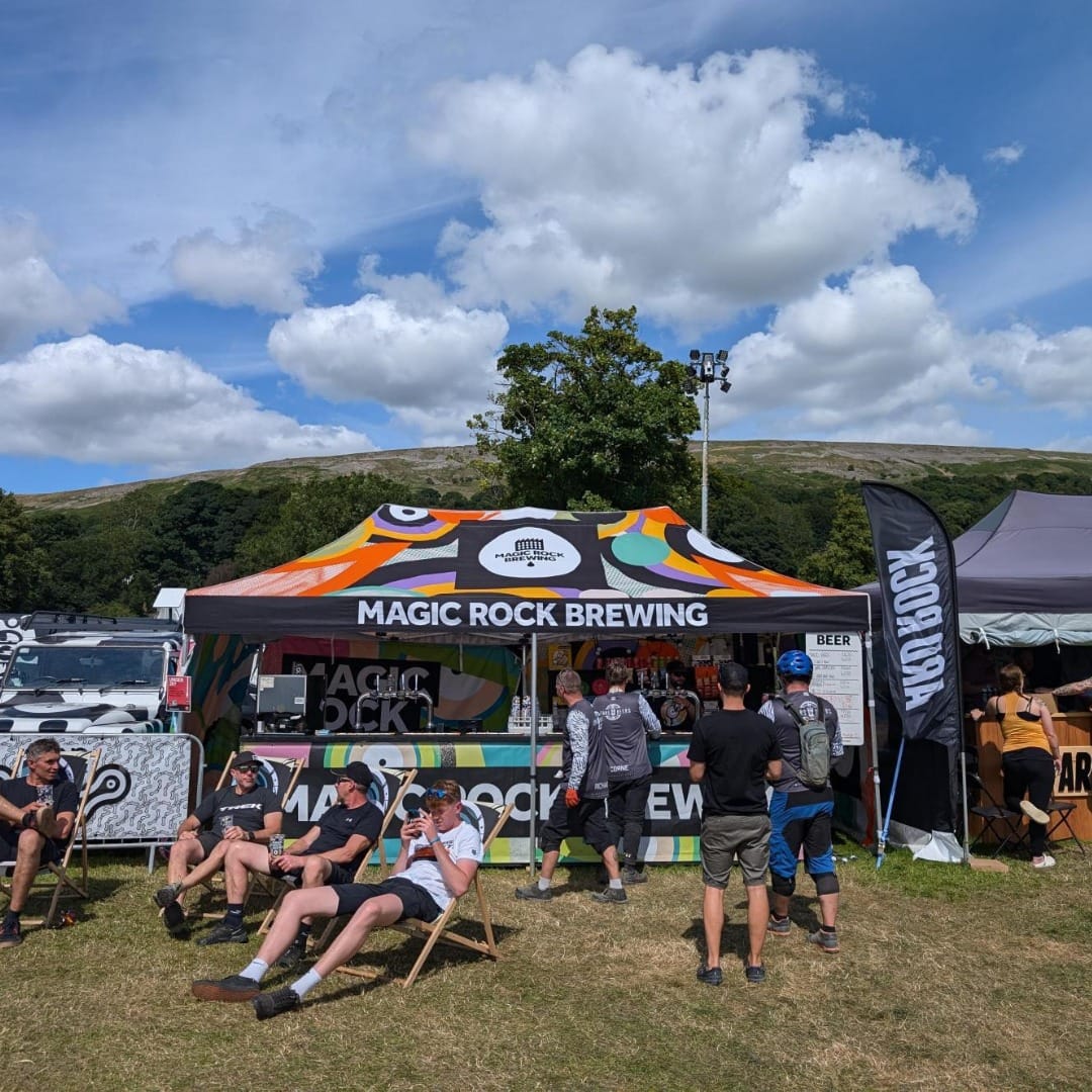 Magic Rock Brewing, a returning customer, came to Surf & Turf Instant Shelters looking for a large sized gazebo to serve their craft beers from at festivals & events beyond. Already impressed with the quality of their previous 3m x 3m Canopro Lite, they sought a larger shelter that offered the same exceptional standards. They opted for a custom printed 6m x 3m Canopro Lite, providing ample space to serve their unique brews while showcasing their eye-catching branding.