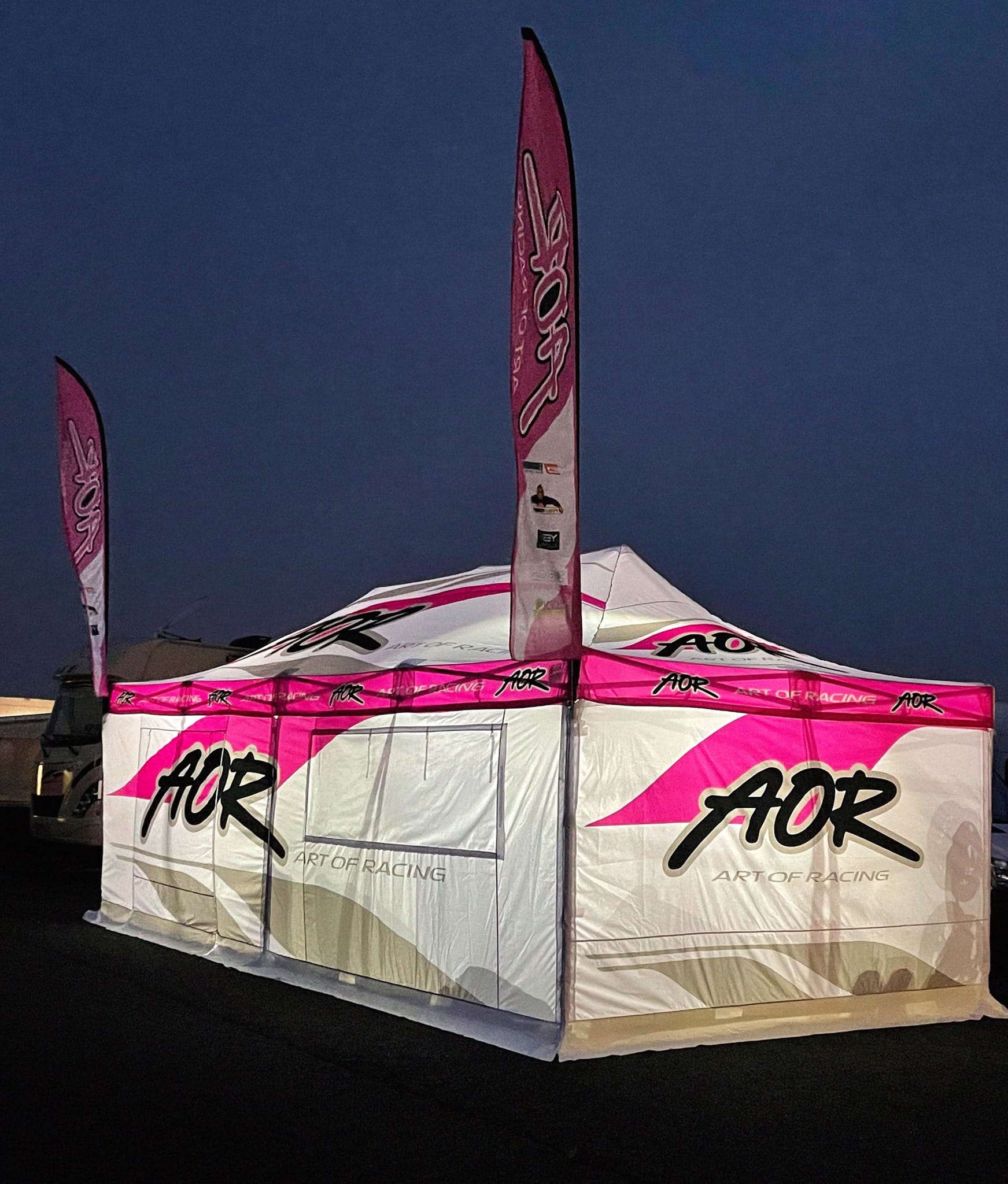 Team AOR also opted for custom printed feather flags with shelter mounts and gazebo LED lighting so they can operate inside their instant shelter all year round, no matter the time of day.