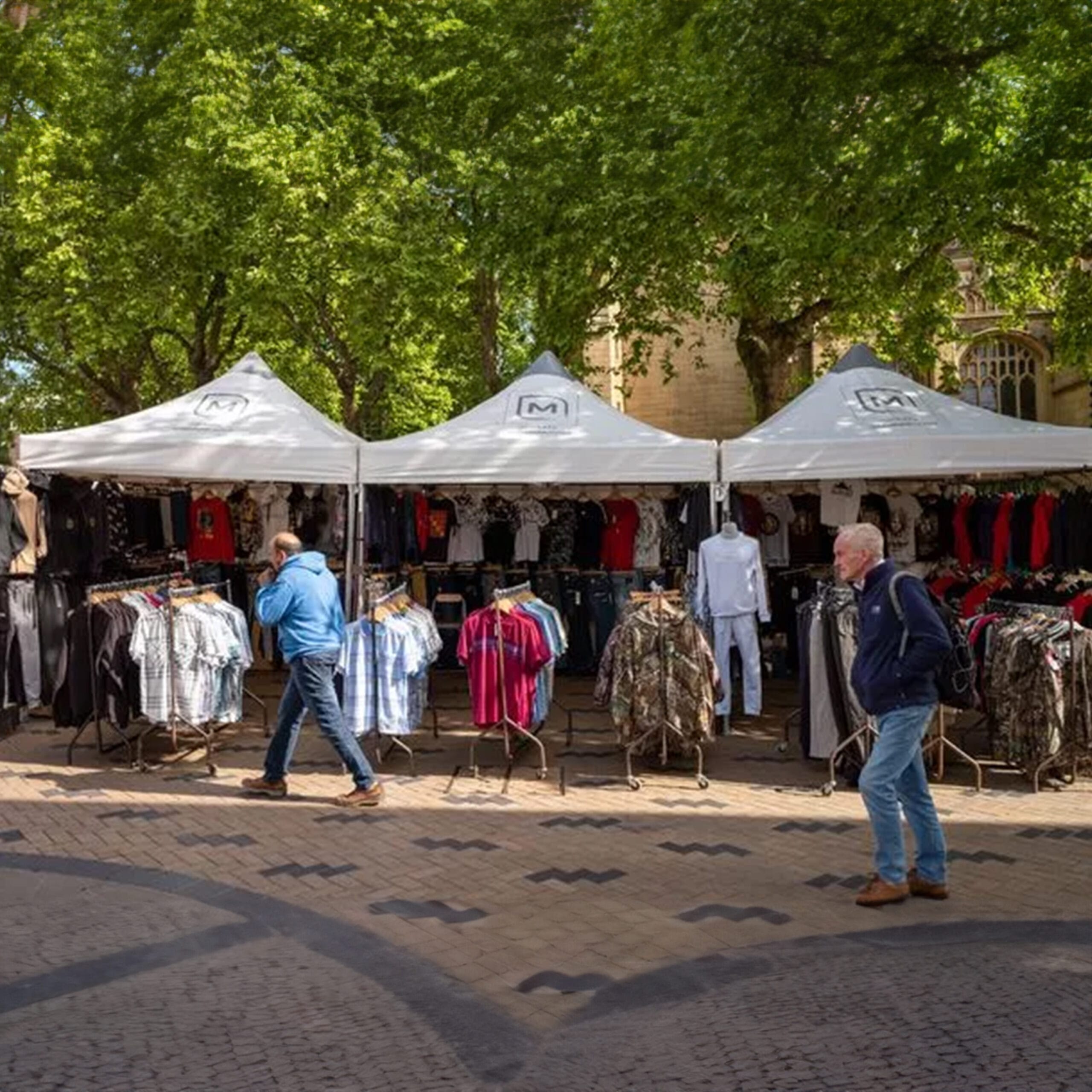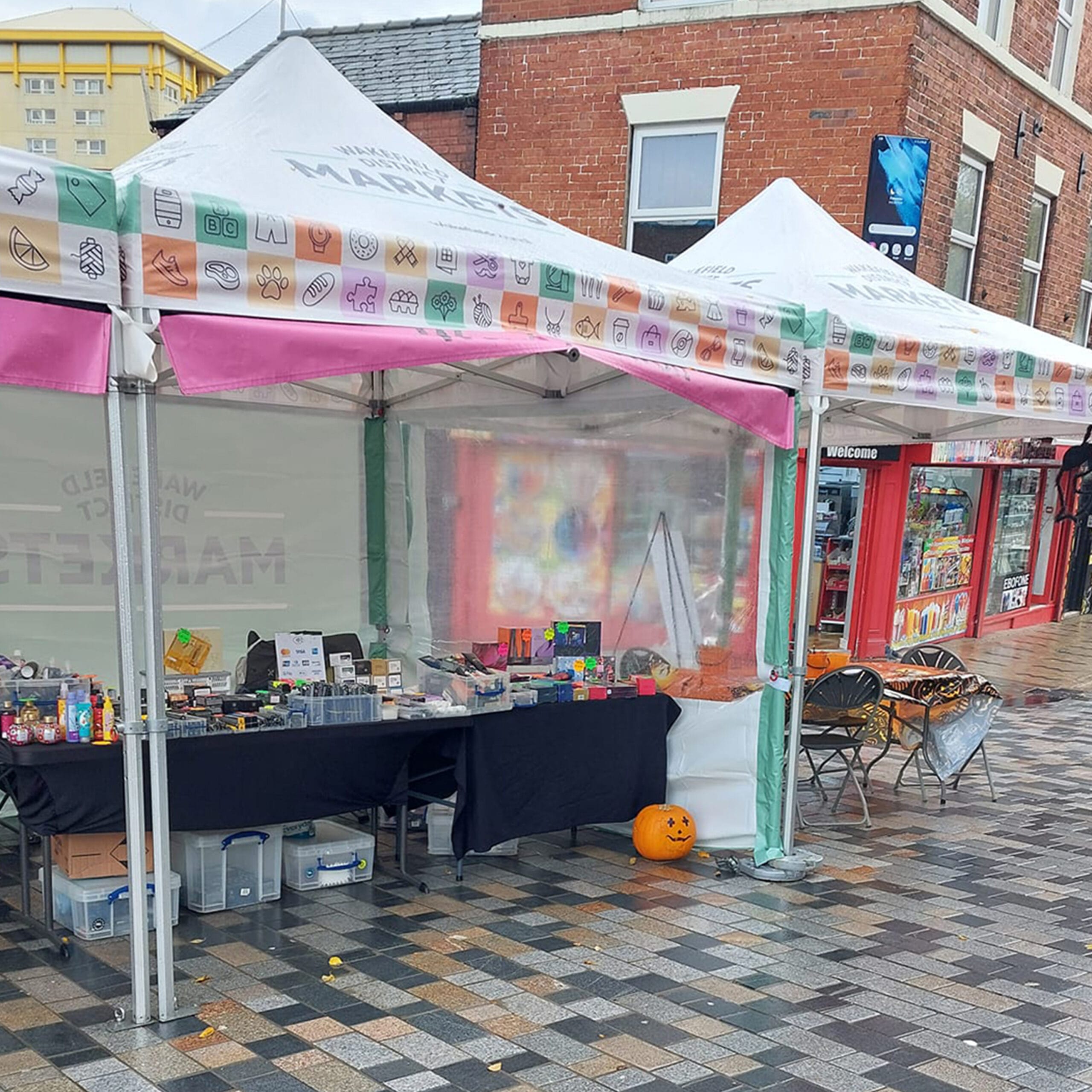 Wakefield Council, a long-standing and valued client, partnered with us in early 2024 as part of their rebranding to upgrade their local market setups. We supplied 30 fully bespoke printed PVC canopies and wall sets, delivering a fresh and professional look for their bustling markets. With high-quality materials and custom branding, our shelters provide the durability and style perfect for community events.