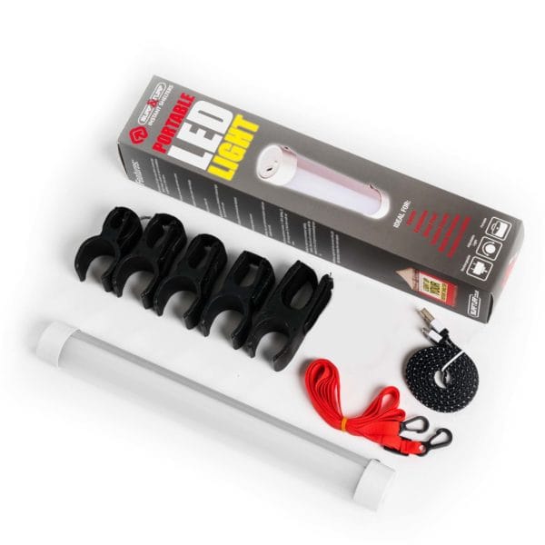 Each light comes complete with a USB lead and a variety of clips to attach to the cross bars of our Instant Shelters