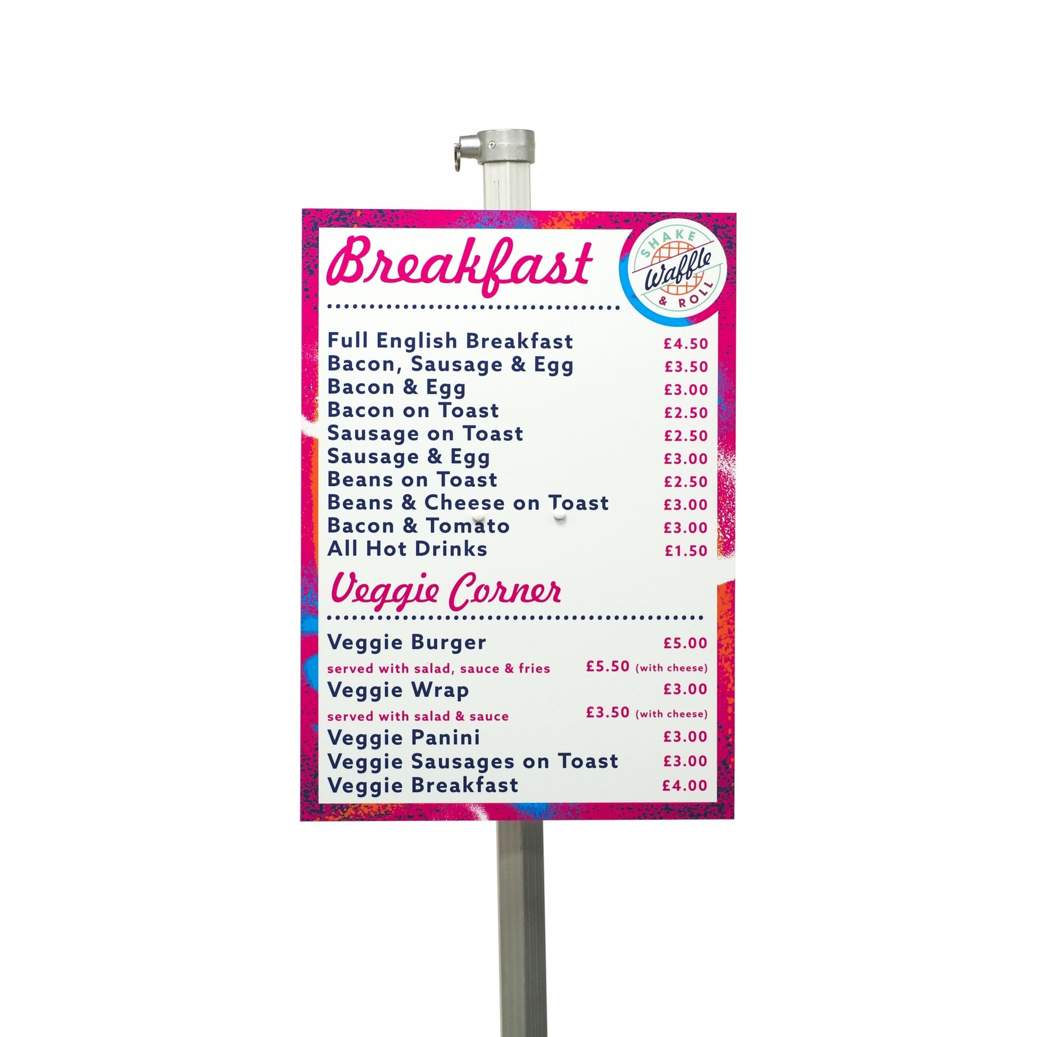 Completely unique to Surf & Turf, our menu board system is the perfect solution for our street food trader friends! Comes complete with a clamp system and fully printed correx board. We have standard size, however any option is available, just call or email the office for bespoke requests!