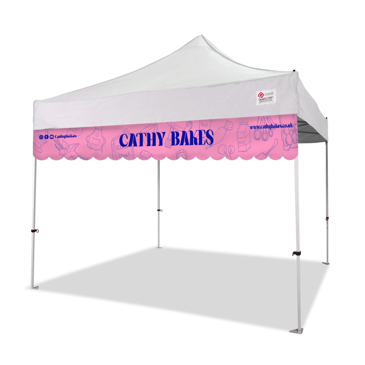 Add one of our eye catching shop front banners to your Instant Shelter!