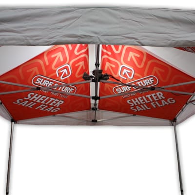 Another unique quality product designed by us. The Shelter Kite Banner is designed to fix to the inside of your instant shelter, adding branding to the underside of you roof. Available in two sizes, they work with any of our 3m instant shelters. Completely detachable the Kite banner can be used on any shelter with no need for adaptations to the canopy.